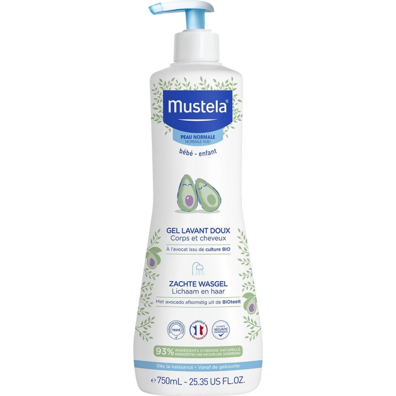 Гель для купання Mustela дбайливо, але ретельно очищає тіло та шкіру голови від будь-якого роду забруднень. Застосовується з перших днів життя.