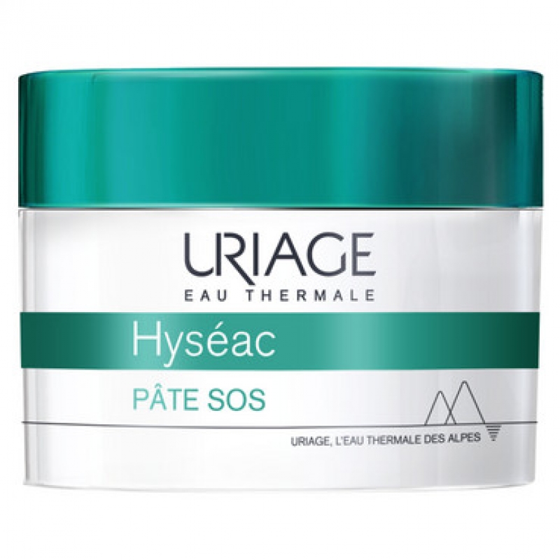 Підсушуюча паста Uriage Hyseac Pate SOS від запалень світло-сірого кольору, з запахом лікувальних косметичних засобів. Має густу консистенцію, що нагадує сіру глину, розведену водою. При нанесенні на шкіру не вбирається, а висихає. Легко змивається теплою водою. Випускається в пластиковій круглої баночці. Обсяг - 15 мл.