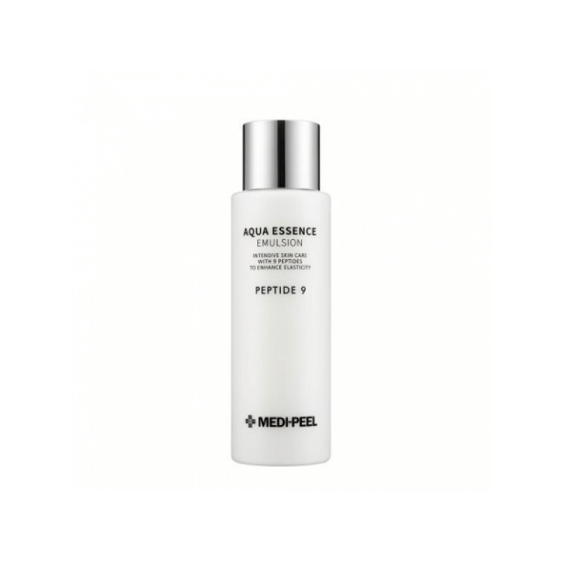 Зволожуюча емульсія для обличчя з пептидами Medi-Peel Peptide 9 Aqua Essence Emulsion - живильний засіб з текстурою легкого крему, яке не тільки допомагає шкірі боротися з сухістю і стресом, але також уповільнює процеси старіння і коригує вікові зміни.