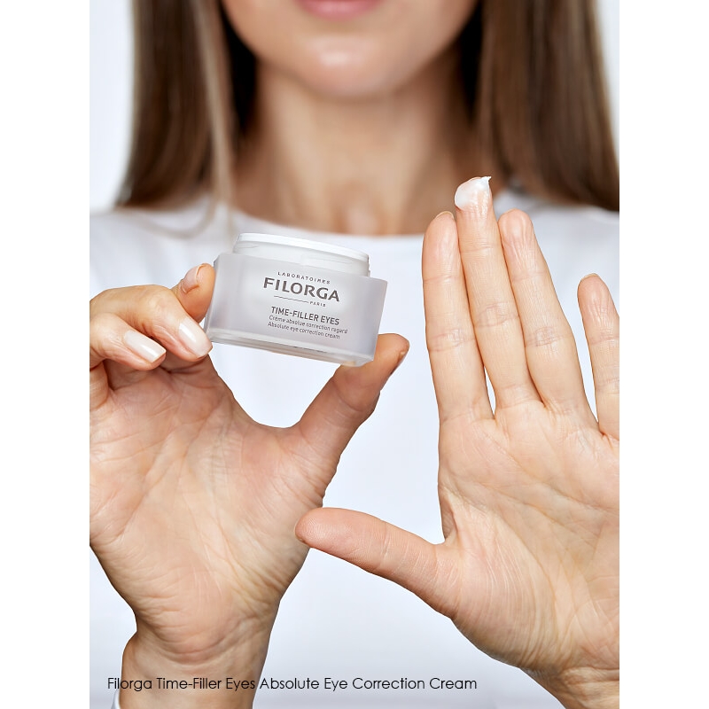 Ніжний засіб для контуру очей Filorga Time-Filler Eyes Absolute Eye Correction Cream делікатно відновлює чутливу шкіру по контуру очей, включаючи область вік, також піклується про вії.