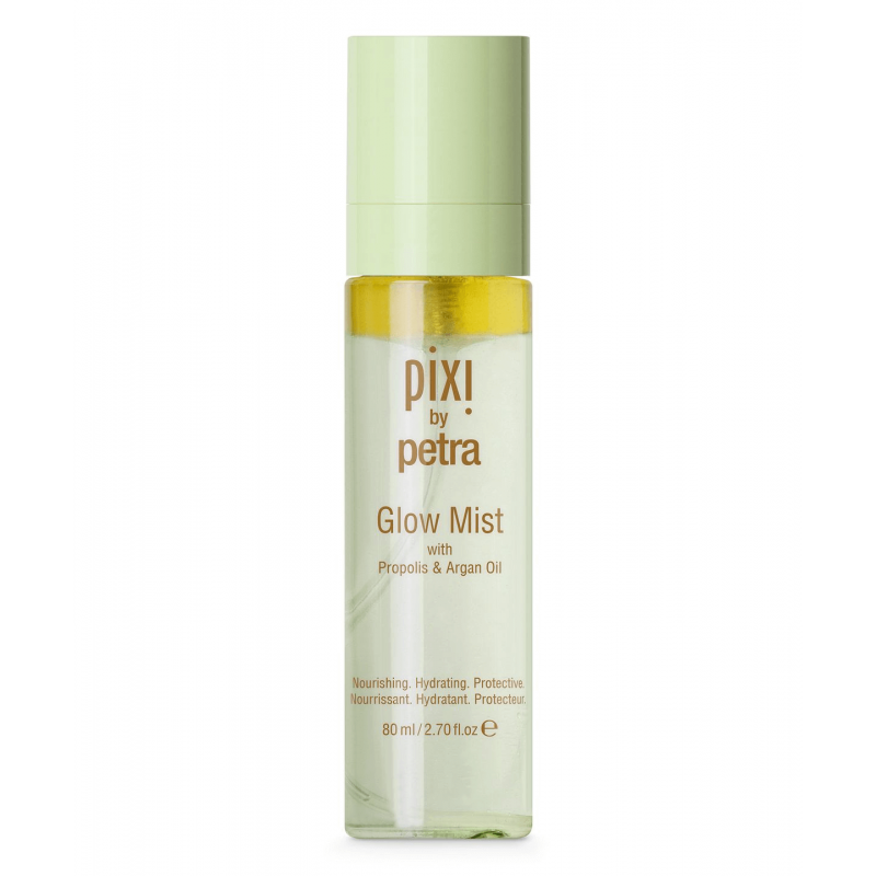 Харчування для шкіри за допомогою спрею-фіксатора PIXI Glow Mist - легкий спрей для зволоження шкіри обличчя і шиї. Збагачений тринадцятьма натуральними маслами, спрей-фіксатор може використовуватися в якості основи під макіяж, щоб захистити шкіру, або ж - закріпіть і надайте сяйва своєму макіяжу. Його унікальна формула містить алое вера і фруктові екстракти, щоб заспокоїти і загоїти шкіру для більш здорового колір обличчя. Прополіс і Арганова масло відновлювати і інтенсивно наповнюють шкіру енергією, при цьому не висушуючи її.