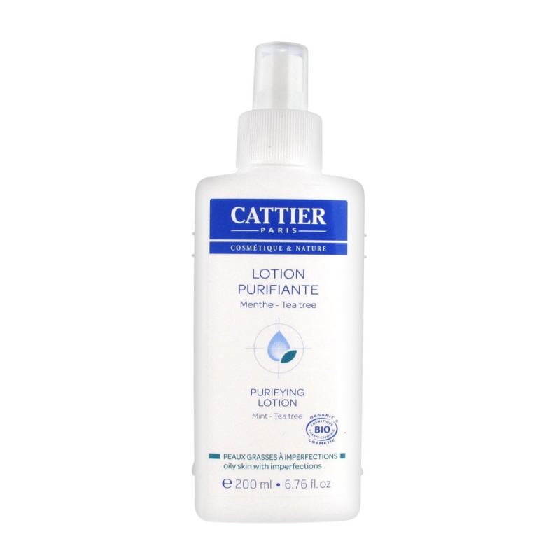 Cattier Lotion Purifiante – це натуральний очищувальний лосьйон, розроблений спеціально для комбінованої та жирної шкіри. Завдяки рослинним екстрактам та органічним активним інгредієнтам, засіб ефективно регулює вироблення себуму, очищає пори, зменшує блиск і надає шкірі матовий фініш. В основі формули – органічна м’ята перцева, розмарин і лаванда, які мають антибактеріальні, себорегулюючі та заспокійливі властивості.