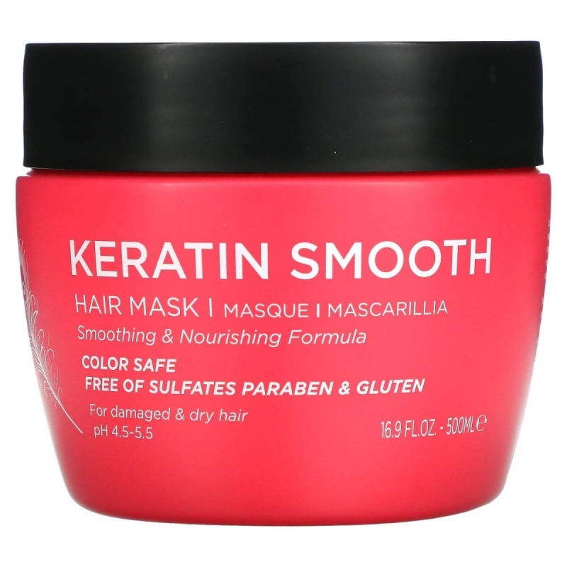 Маска для волосся з кератином у складі якої білок кератину для створення живильного лікувального засобу, який відновлює силу та вологу волосся. Після використання пасма стають гладшими та менш пухнастими. Крім того, маска допомагає відновити пошкоджене волосся. Вона підходить як для хімічно обробленого чи фарбованого волосся, так і для натурального. Маска з кератином надає волоссю здоровішого вигляду та робить його м’яким і гладким.