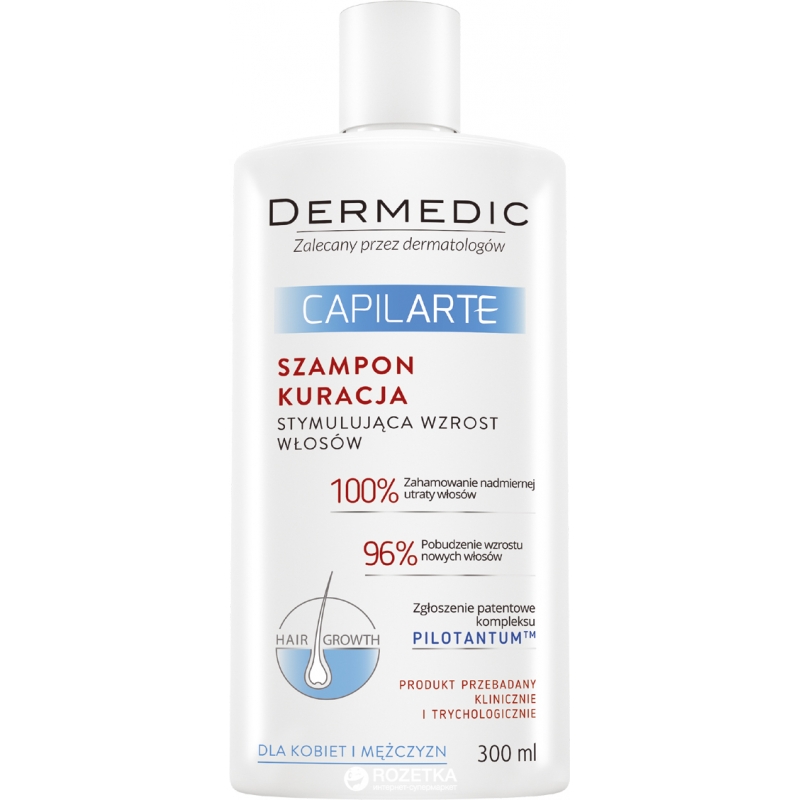 Шампунь Dermedic Capilarte стимулюючий та відновлюючий ріст волосся – спеціальний засіб для жінок та чоловіків із проблемою посиленого передчасного випадання волосся різної етіології, у тому числі гормональної та генетичної. М'яко очищає волосся та шкіру голови.