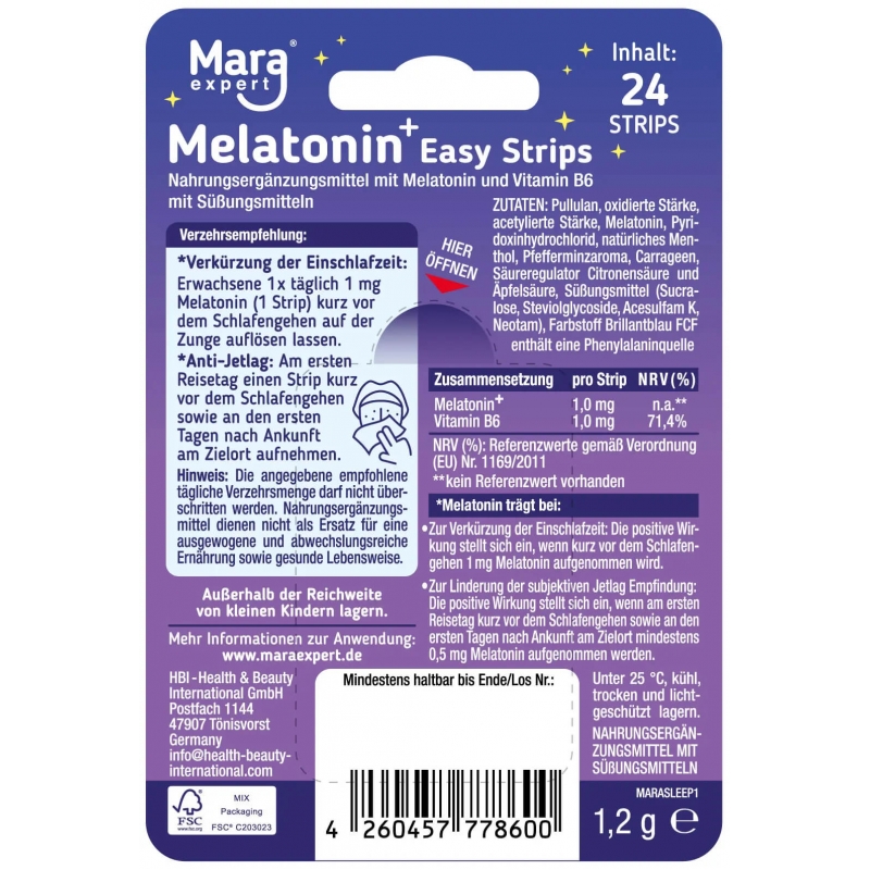 Забудь про безсонні ночі з Mara Melatonin Easy Strips 1 mg — інноваційними смужками з мелатоніном, які допомагають легко заснути та відновити природний ритм сну. Кожна смужка розчиняється просто на язиці, забезпечуючи швидке всмоктування і дію вже через кілька хвилин.