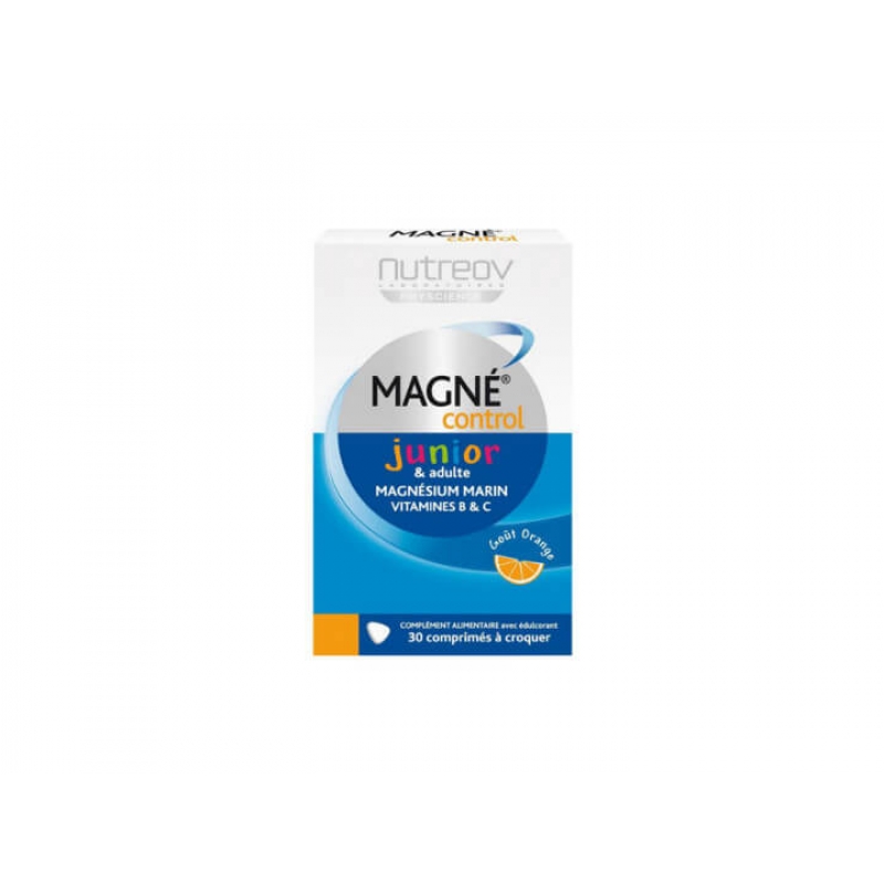 Nutreov Magné Control Junior & Adults – це харчова добавка, яка містить магній морського походження, вітаміни B3, B6 та C.